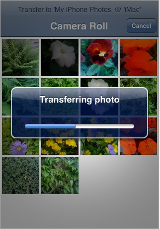 There are a few drawbacks, however. You can only transfer one photo at a time, and the procedure can only be done with photos on your iPhone camera roll. You can't select and transfer photos from your iPhone photo library that you say imported from your iPhoto library onto your iPhone. In similar iPhone camera roll related apps, you can select multiple photos for certain procedures, so I'm sure that the developer will be able to add this ability in future updates of PhototoMac. Also, as the developer points out, "Because of a limitation in the iPhone SDK, the transferred photos contain no EXIF information (and therefor also no GPS/location information.)"